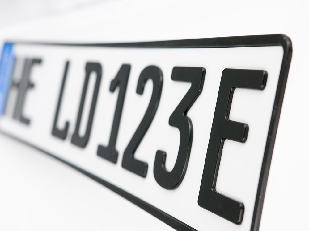 Ein umweltfreundliches Kennzeichen für ein umweltfreundliches Fahrzeug: Das 3D E-Kennzeichen. Unser innovatives E-Kennzeichen aus Performance starkem Kunststoff ist flexibel, robust und leicht zu montieren, selbst ohne einen speziellen Kennzeichenhalter.