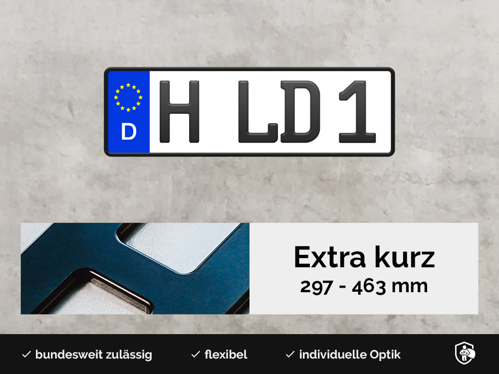 Hinweis: Für eine reibungslose Zulassung von kurzen Kennzeichen, empfehlen wir vor der Bestellung kurze Rücksprache mit ihrer Zulassungsstelle zu halten. Es gibt in Deutschland Zulassungsstellen, die kurze Platinen nur bedingt zulassen.