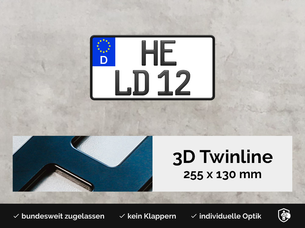 Die zweizeiligen 3D Kennzeichen sind in folgenden Maßen erhältlich: