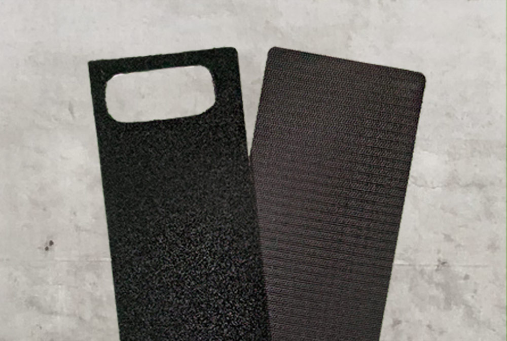 - ein konturgeformtes, vollflächiges und selbstklebendes Spezialklett zum direkten Aufbringen am Fahrzeug (lackierte Flächen) im Format 510 x 100 mm