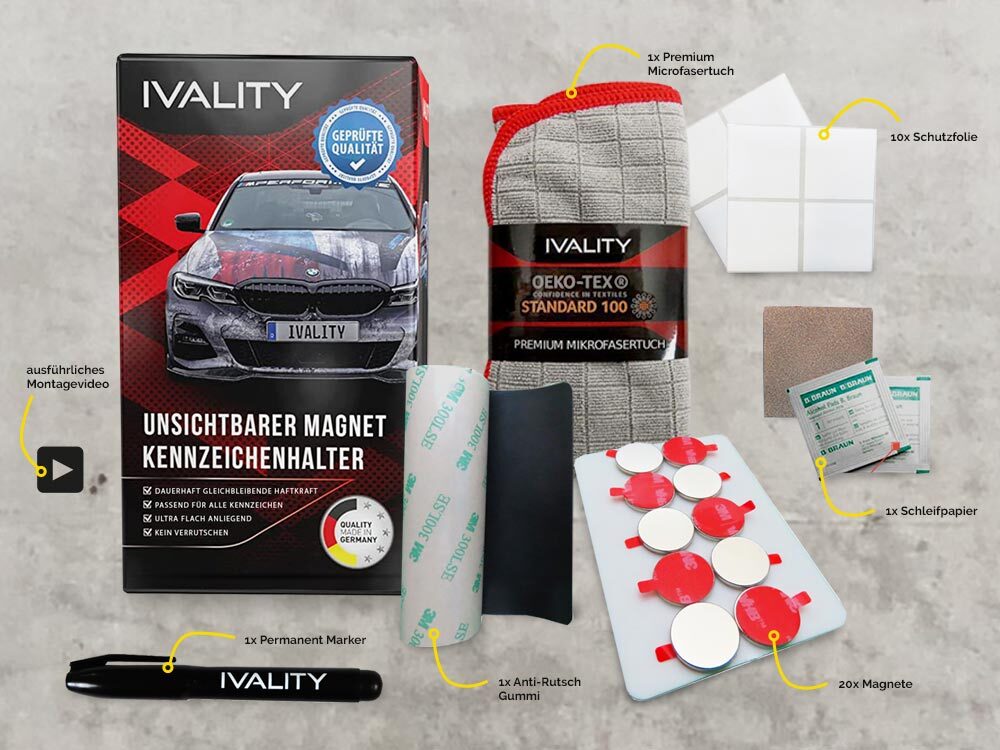 Bei den Haltern wurde viel Wert auf die Qualität der Magnete gesetzt und so befinden sich die stärksten Magnete und Klebestreifen des Marktführers 3M im Set. Die Kennzeichen halten somit höchsten Geschwindigkeiten und auch der möglichen Durchfahrt einer Waschanlage stand.