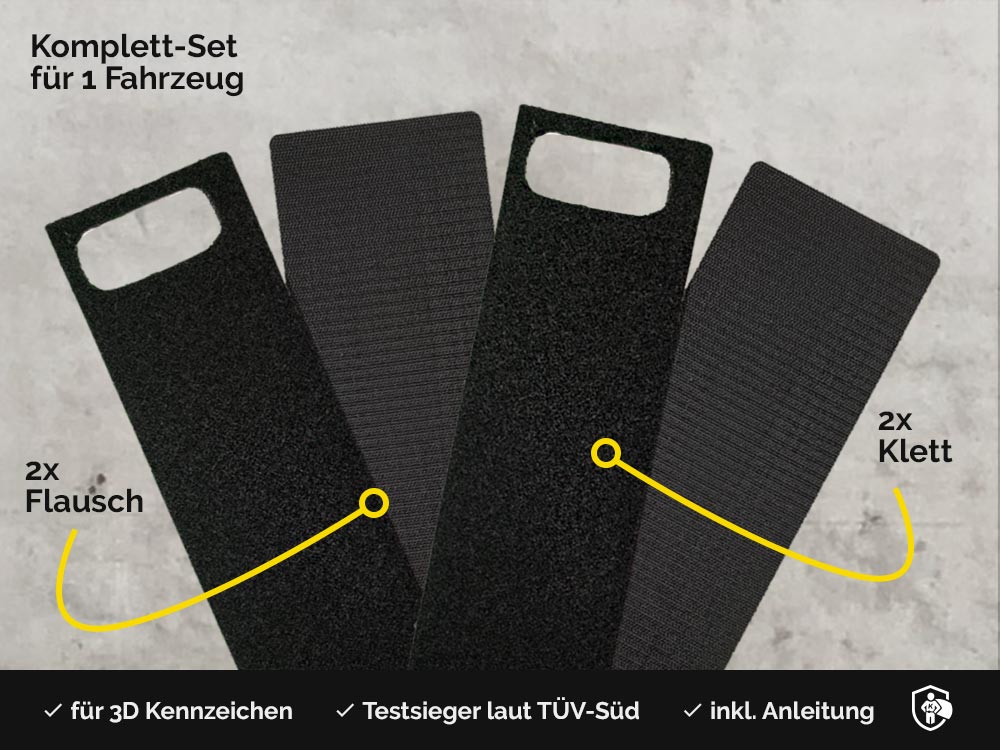 - Dauerhafte und feste Anbringung der 3D-Kennzeichen im Front und Heckbereich